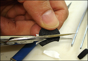 First, cut the piece to the approximate shape - roughly 6mm long and 1mm wide. If it's too high, you can use either a hobby knife (be careful!) or scissors to trim it to 2mm in height.