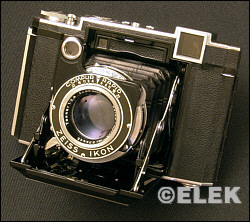 The original Super Ikonta B featured a fast, uncoated f/2.8 Tessar mated to a Compur shutter. There were separate windows for focusing and composing, and like its other Super Ikonta siblings, the camera used the new Zeiss Ikon rotating wedge-prism to achieve correct focus.